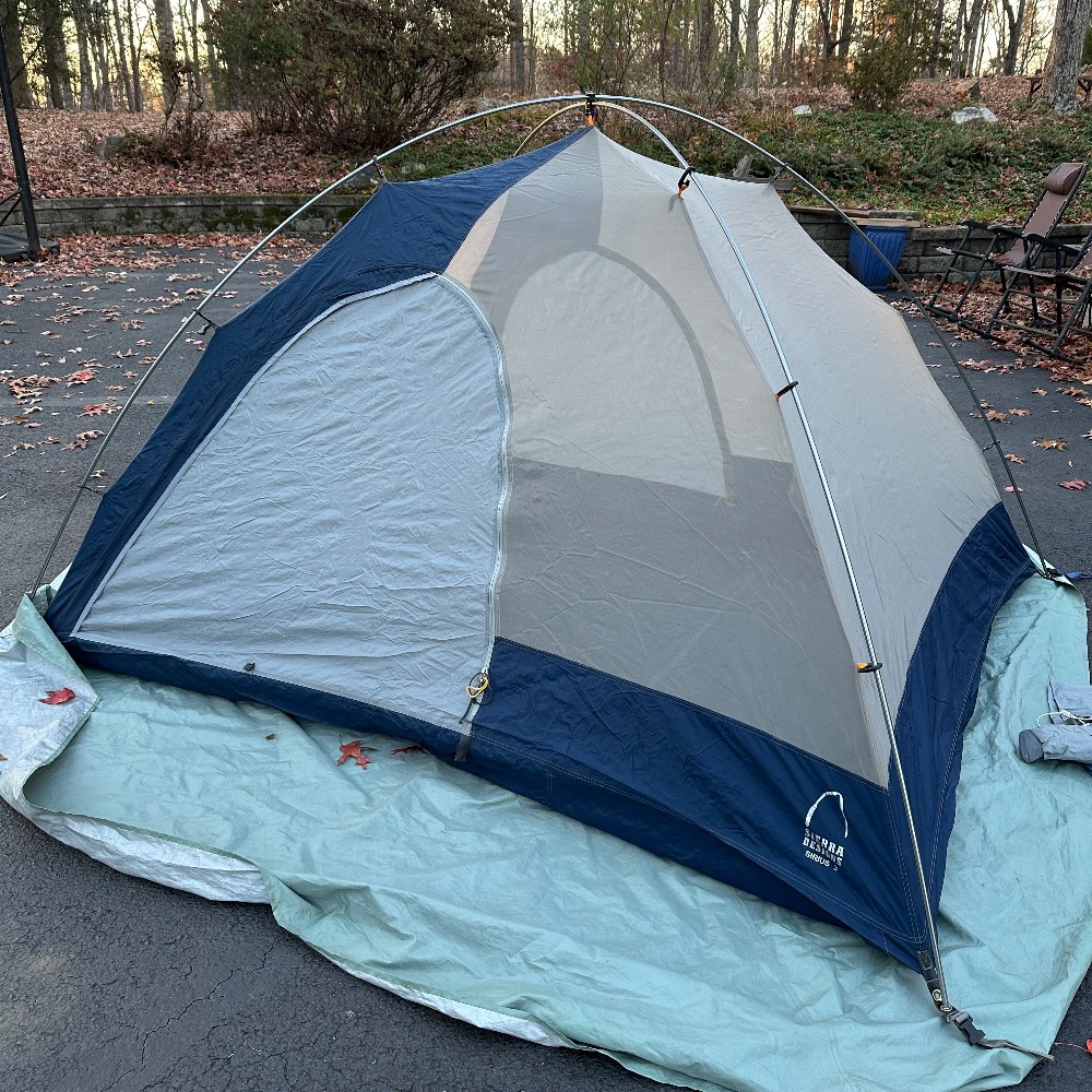 $199 New. Some age and use, weird rainfly, but 2-door, has footprint and stakes. EZ setup.