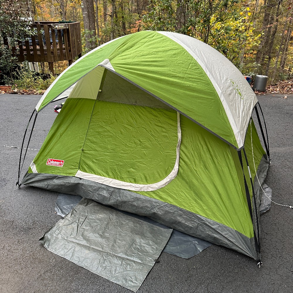 $83 New. Built in footprint, has stakes and a doormat. Some dirt, inside clean.Missing one hook.